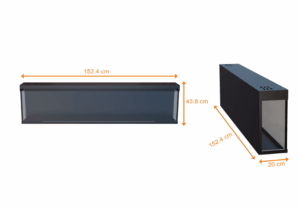 152,4 cm. x 20 cm. X 43.8 cm. (WxDxH)