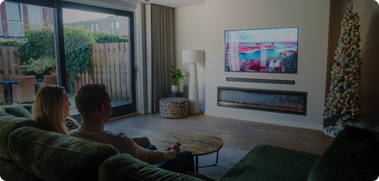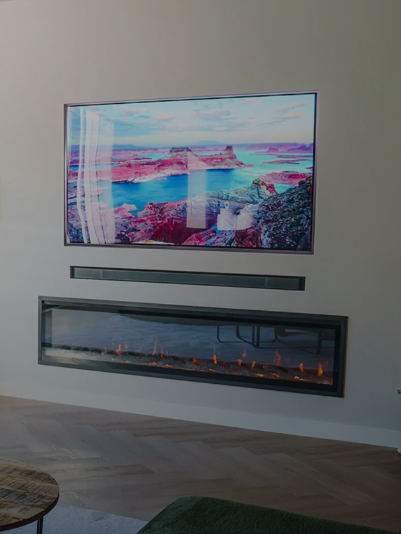 Een Cinewall gecombineerd met een elektrische sfeerhaard geeft een complete luxe uitstraling aan uw woonkamer. Een echte eyecatcher!