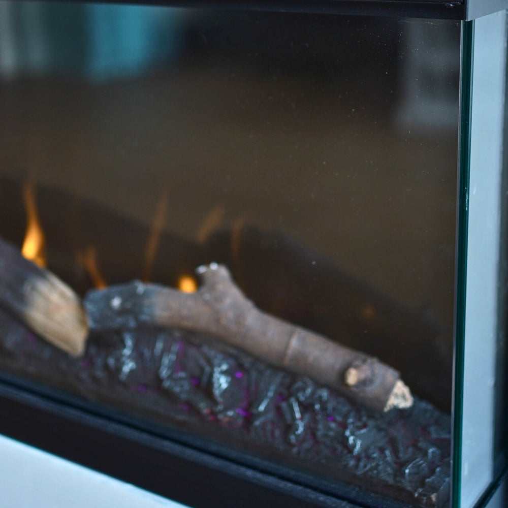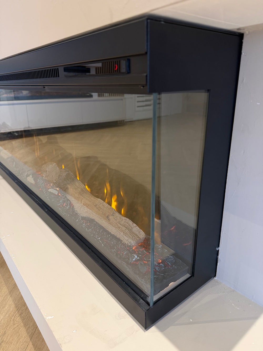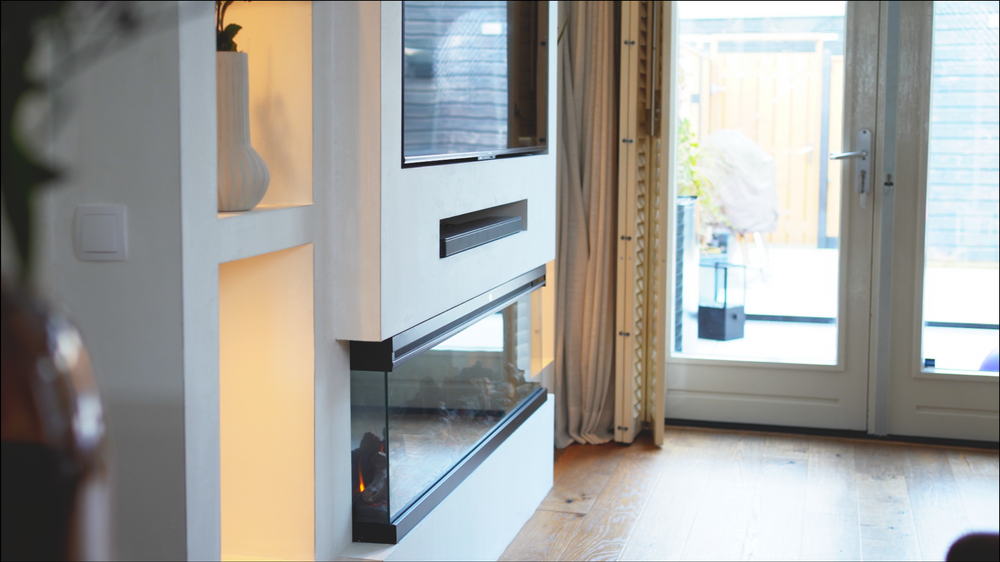 Een 3-zijdige haard is aan de voor-, linker- en rechterzijde zichtbaar, waardoor je een luxe, open uitstraling krijgt. Ideaal voor cinewalls, roomdividers en moderne interieurs.