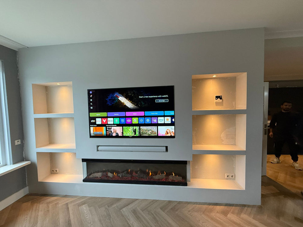 Een Cinewall gecombineerd met een elektrische sfeerhaard geeft een complete luxe uitstraling aan uw woonkamer. Onze zuinige en duurzame sfeerhaarden zorgen er voor dat deze perfect in een Cinewall geplaatst kunnen worden.