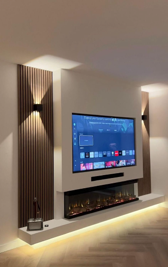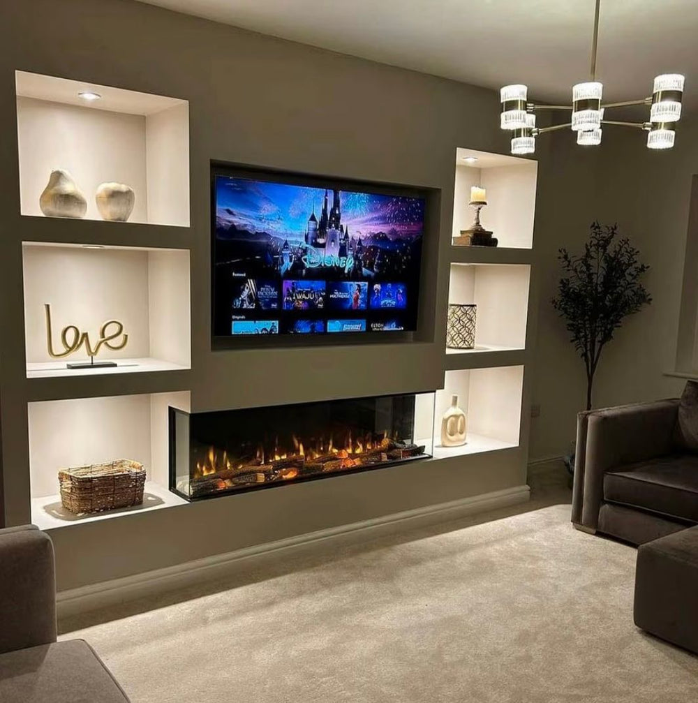 Een Cinewall gecombineerd met een elektrische sfeerhaard geeft een complete luxe uitstraling aan uw woonkamer. Onze zuinige en duurzame sfeerhaarden zorgen er voor dat deze perfect in een Cinewall geplaatst kunnen worden. De ideale elektrische sfeerhaard voor onder uw TV is het model Monaco.