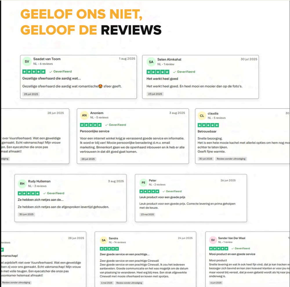 Gemiddeld mits de sfeerhaard voorradig is de volgende werkdag in huis!